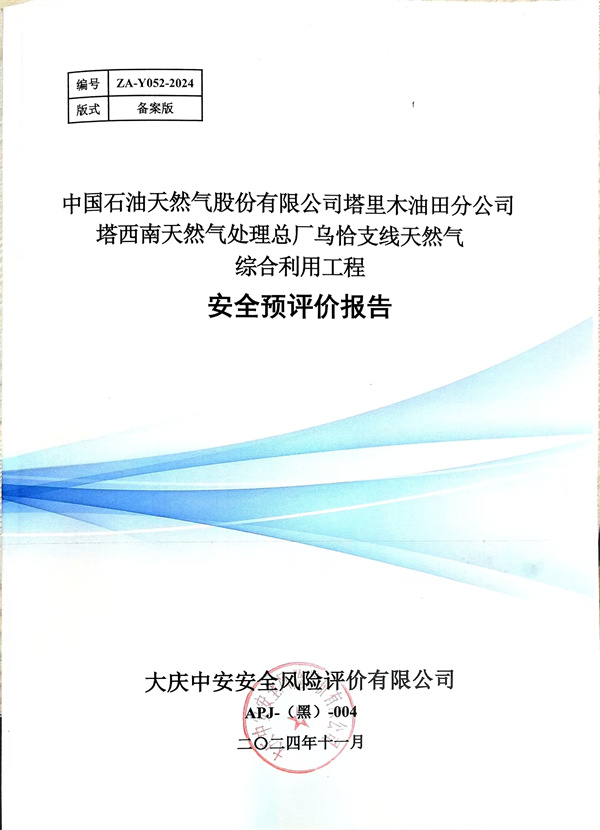 中国石油天然气股份有限公司塔里木油田分公司塔西南天然气处理总厂乌恰支线天然气综合利用工程安全预评价报告 |