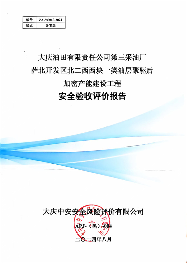 大庆油田有限责任公司第三采油厂萨北开发区北二西西块一类油层聚驱后加密产能建设工程安全验收评价报告