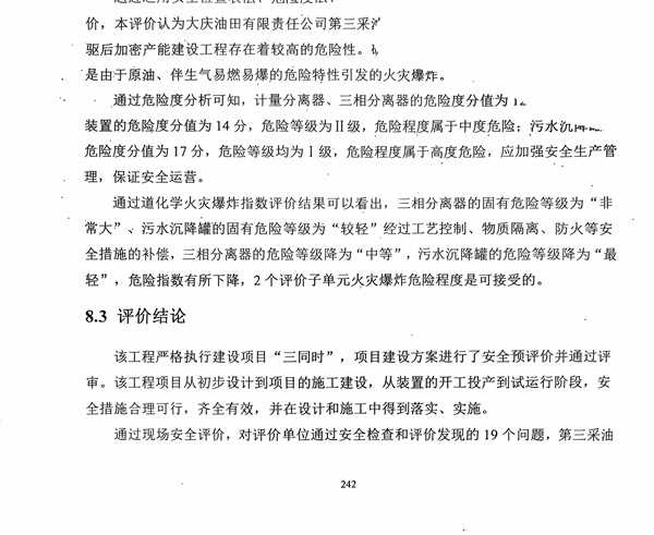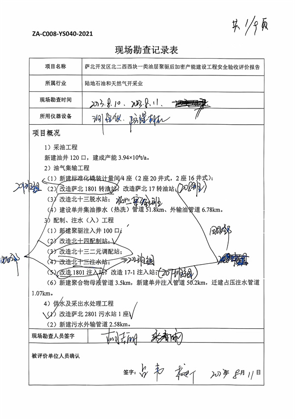 该工程严格执行建设项目“三同时”,项目建设方案进行了安全预评价并通过评审。该工程项目从初步设计到项目的施工建设,从装置的开工投产到试运行阶段,安全措施合理可行,齐全有效,并在设计和施工中得到落实、实施。 通过现场安全评价,对评价单位通过安全检查和评价发现的19个问题,第三采油厂均能认真对待,积极整改,现已整改完成。 结论:大庆油田有限责任公司第三采油厂萨北开发区北二西西块一类油层聚驱后加密产能建设工程安全设施符合“三同时”要求,试运行情况良好,安全生产管理有效,具备安全验收的条件。 |