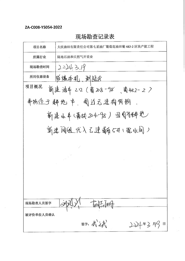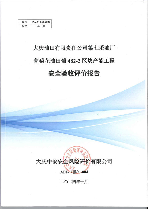 大庆油田有限责任公司第七采油厂葡萄花油田葡482-2区块产能工程安全验收评价报告