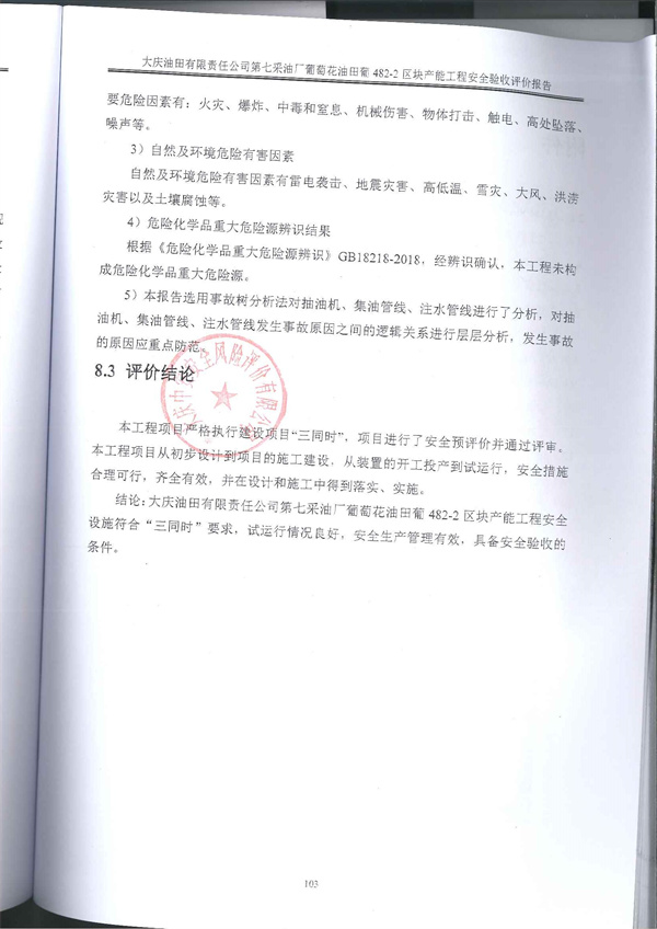 大庆油田有限责任公司第七采油厂葡萄花油田葡482-2区块产能工程 安全验收评价报告 |