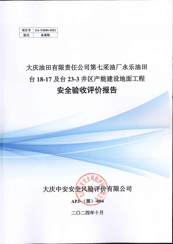 大庆油田有限责任公司第七采油厂永乐油田台18-17及台23-3井区产能建设地面工程安全验收评价报告 |