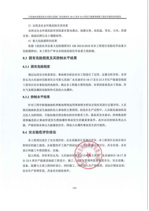 大庆油田有限责任公司第七采油厂永乐油田台18-17及台23-3井区 产能建设地面工程安全验收评价报告