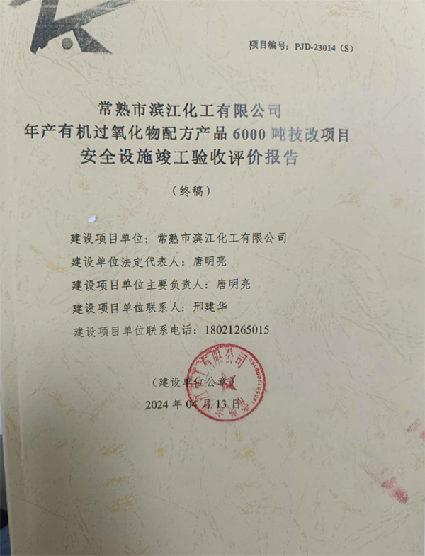 常熟市滨江化工有限公司年产有机过氧化物配方产品6000吨技改项目 安全设施竣工验收评价报告