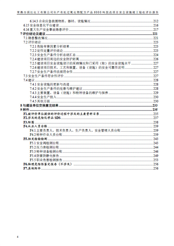 常熟市滨江化工有限公司年产有机过氧化物配方产品6000吨技改项目安全设施竣工验收评价报告 |