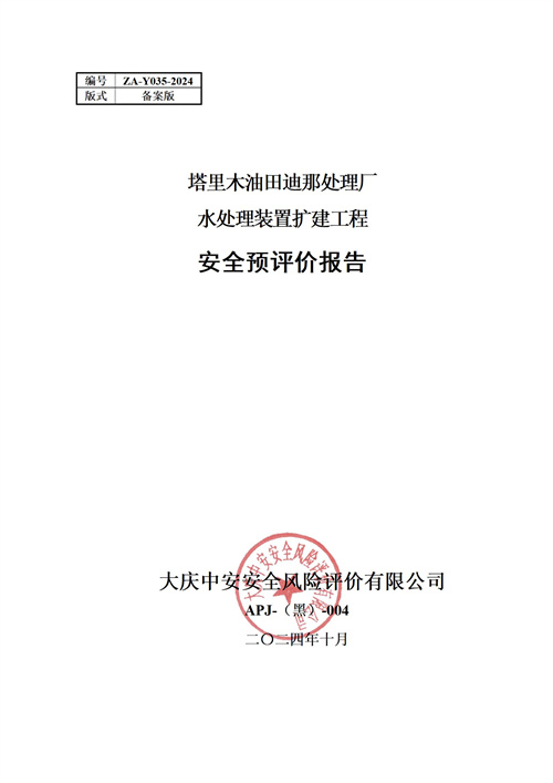 塔里木油田迪那处理厂水处理装置扩建工程安全预评价报告 |