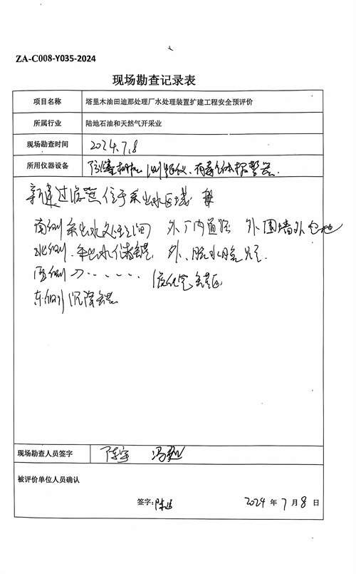 对迪那2处理站扩建位置周边环境进行检查。 |