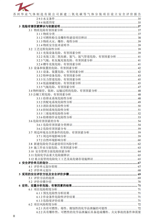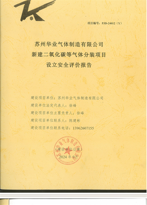 苏州华业气体制造有限公司新建二氧化碳等气体分装项目设立安全评价报告 |