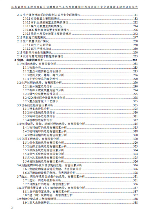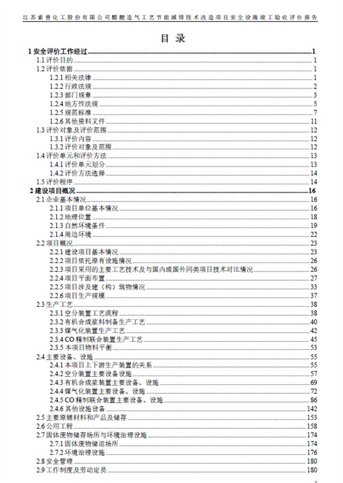 江苏索普化工股份有限公司醋酸造气工艺节能减排技术改造项目安全设施竣工验收评价报告 |