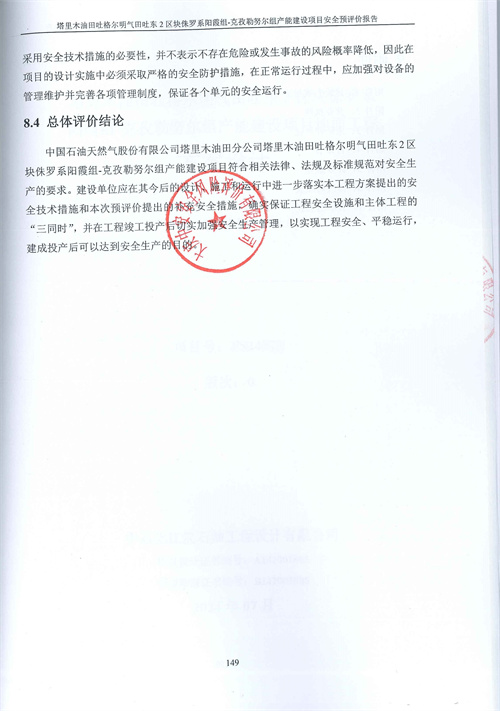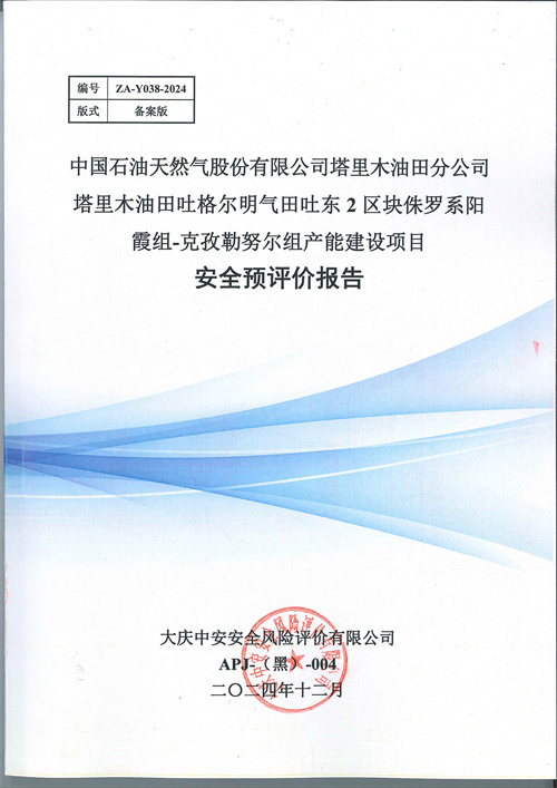 中国石油天然气股份有限公司塔里木油田分公司塔里木油田吐格尔明气田吐东2区块侏罗系阳霞组-克孜勒努尔组产能建设项目地面工程安全预评价报告 |