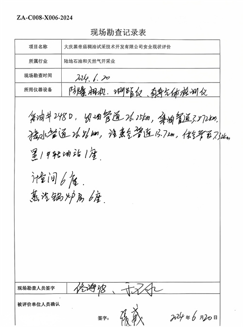 大庆黑帝庙稠油试采技术开发有限公司安全现状评价报告