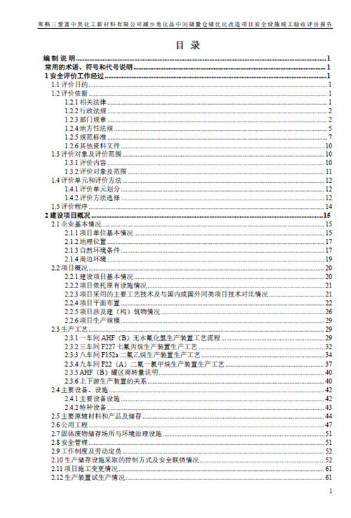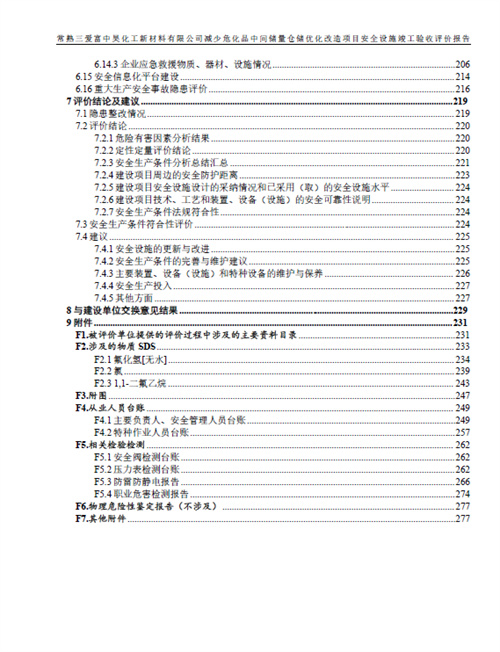 常熟三爱富中昊化工新材料有限公司减少危化品中间储量仓储优化改造项目安全设施竣工验收评价报告 |