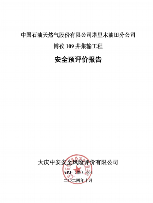 中国石油天然气股份有限公司塔里木油田分公司博孜109井集输工程安全预评价报告