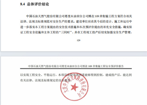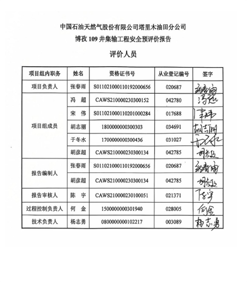 中国石油天然气股份有限公司塔里木油田分公司博孜109井集输工程方案符合相关法律、法规及标准规范对安全生产的要求。建设单位应在其今后的设计、施工和运行中进一步落实本工程方案提出的安全技术措施和本次预评价提出的补充安全措施,确实保证工程安全设施和主体工程的“三同时”,并在工程竣工投产后切实加强安全生产管理,以实现工程安全、平稳运行,本项目危险有害因素能够得到控制,建成投产后,能达到有关法律、法规及标准规定的安全要求。 |