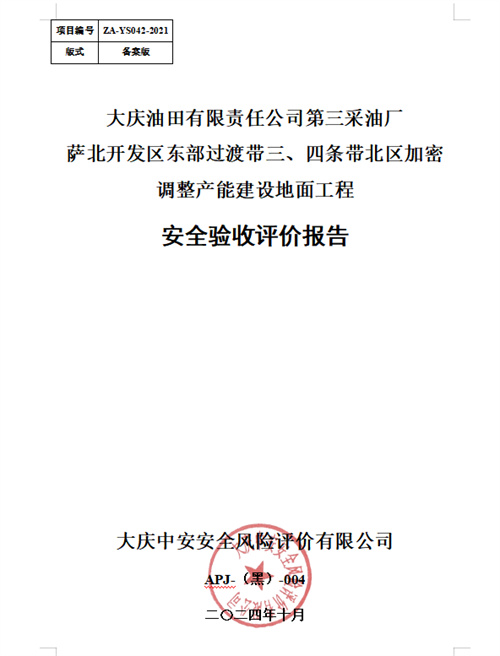 大庆油田有限责任公司第三采油厂萨北开发区东部过渡带三、四条带北区加密调整产能建设地面工程安全验收评价报告 |