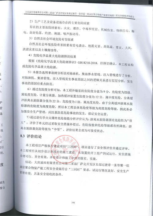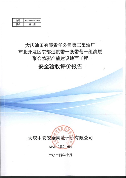大庆油田有限责任公司第三采油厂萨北开发区东部过渡带一条带葡一组油层聚合物驱产能建设地面工程安全验收评价报告 |