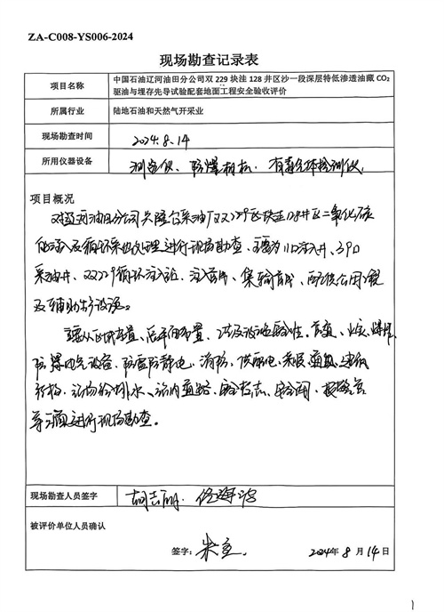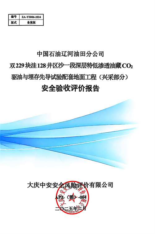 中国石油辽河油田分公司双229块洼128井区沙一段深层特低渗透油藏CO2驱油与埋存先导试验配套地面工程(兴采部分)安全验收评价报告 |