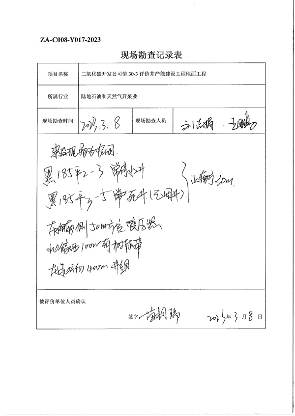 吉林油田公司二氧化碳开发公司情30-3评价井产能建设工程地面工程安全预评价