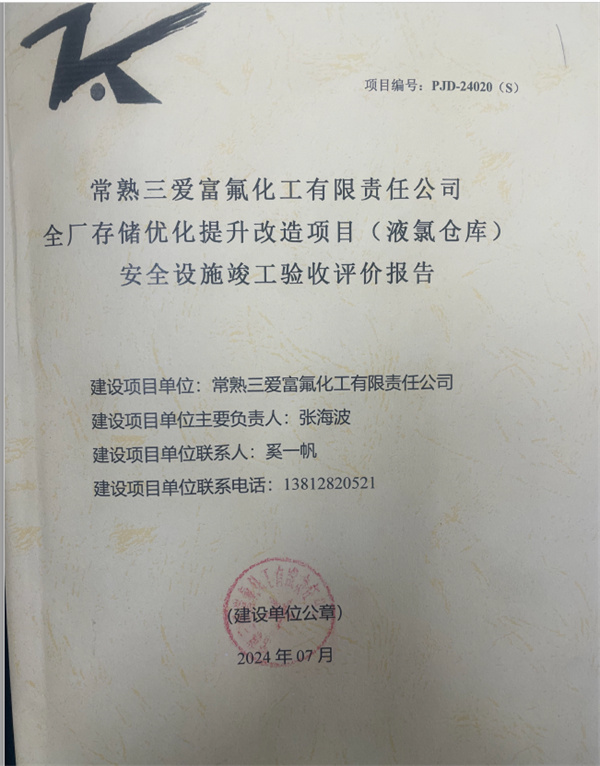 常熟三爱富氟化工有限责任公司全厂存储优化提升改造项目(液氯仓库)安全设施竣工验收评价报告