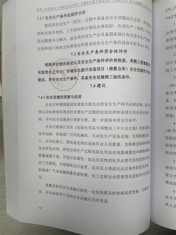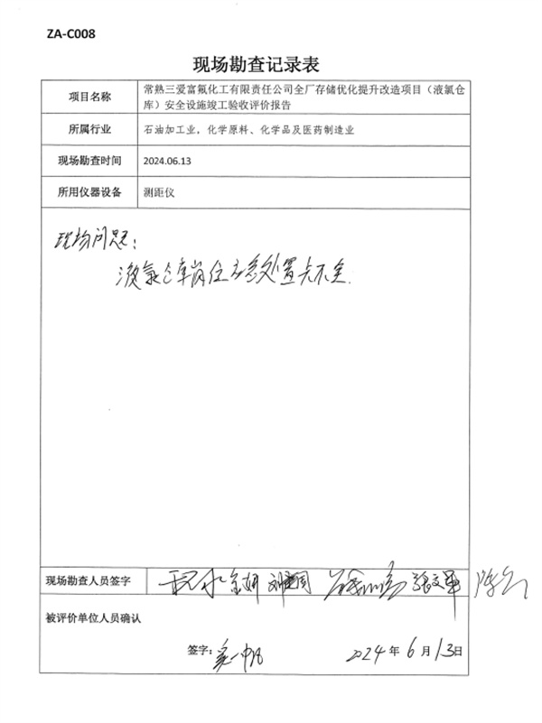 常熟三爱富氟化工有限责任公司全厂存储优化提升改造项目(液氯仓库)安全设施符合设计要求,具备安全设施竣工验收条件。
