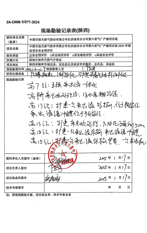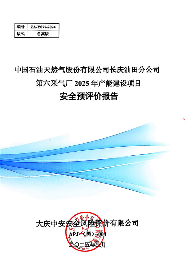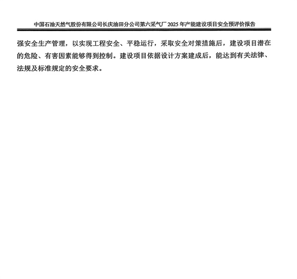 中国石油天然气股份有限公司长庆油田分公司第六采气厂2025年产能建设项目安全预评价报告 |
