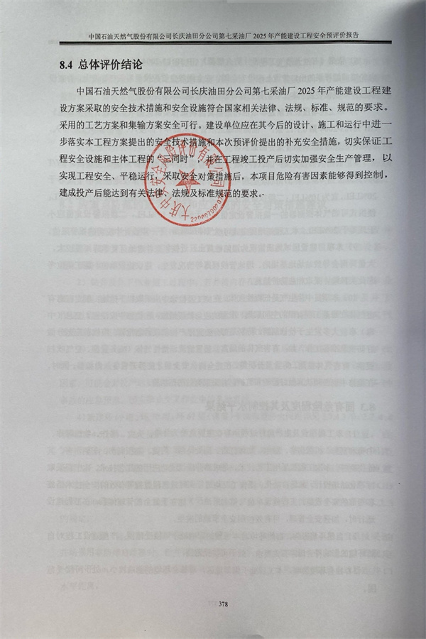 中国石油天然气股份有限公司长庆油田分公司第七采油厂2025年产能建设工程安全预评价报告 |
