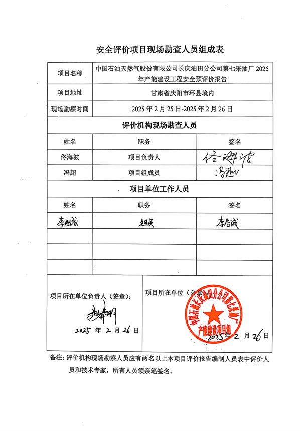 中国石油天然气股份有限公司长庆油田分公司第七采油厂2025年产能建设工程安全预评价报告