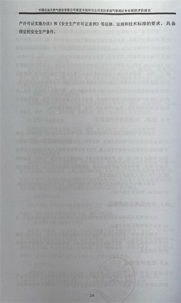中国石油天然气股份有限公司塔里木油田分公司克拉采油气管理区安全现状评价报告 |