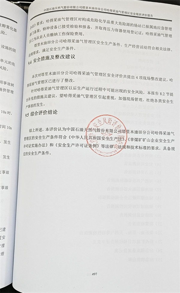 本评价认为中国石油天然气股份有限公司塔里木油田分公司哈得采油气管理区的安全生产条件符合《中华人民共和国安全生产法》、《非煤矿矿山企业安全生产许可证实施办法》和《安全生产许可证条例》等法律、法规和技术标准的要求,具备规定的安全生产条件。 |