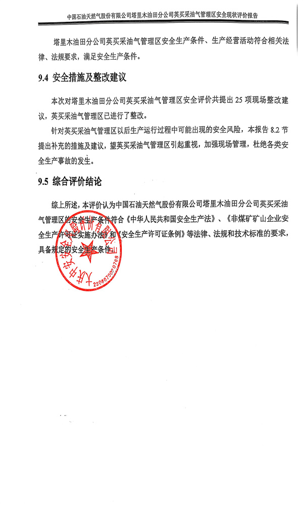 中国石油天然气股份有限公司塔里木油田分公司英买采油气管理区安全现状评价报告