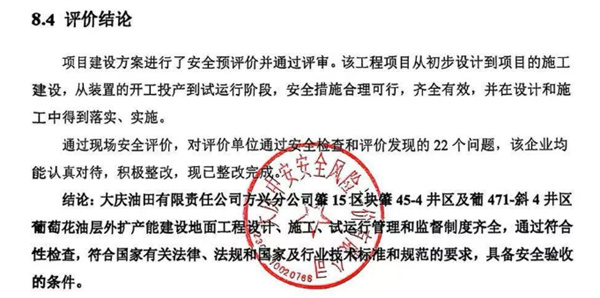 大庆油田有限责任公司方兴分公司肇15区块肇45-4井区及葡471-斜4井区葡萄花油层外扩产能建设地面工程设计、施工、试运行管理和监督制度齐全,通过符合性检查,符合国家有关法律、法规和国家及行业技术标准和规范的要求,具备安全验收的条件。 |