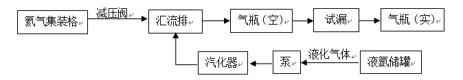 氮氦混合气充装工艺: 氦气集装格通过减压阀减压经过管道进入气瓶后通入汽化后的氮气。