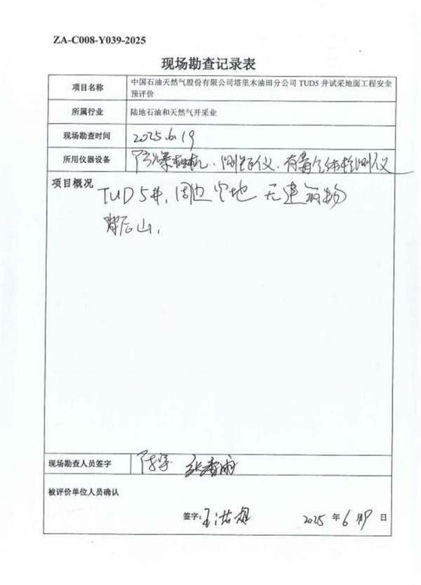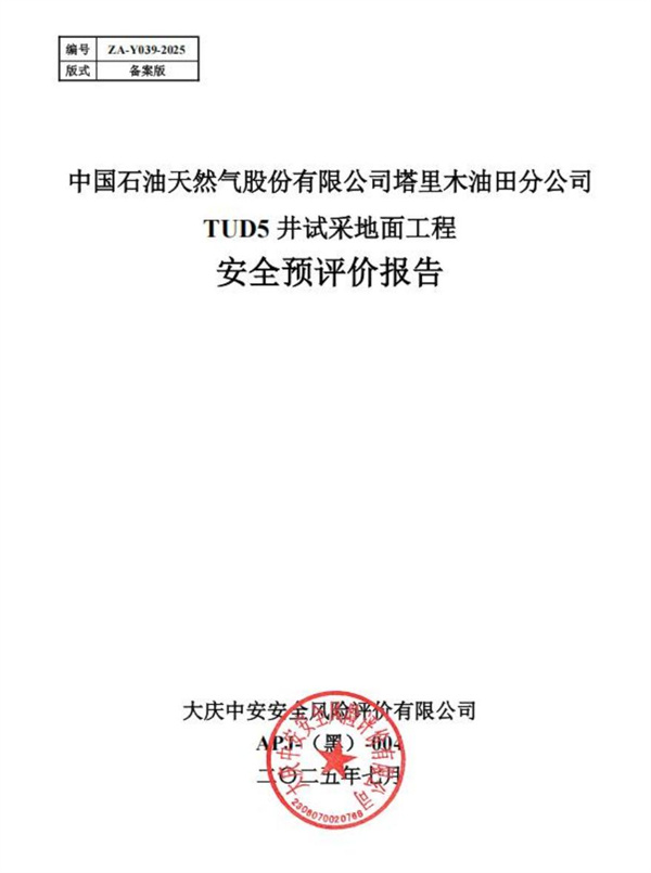中国石油天然气股份有限公司塔里木油田分公司 TUD5 井试采地面工程安全预评价报告