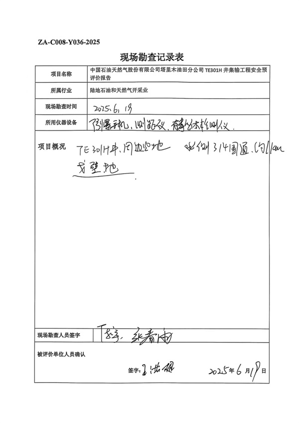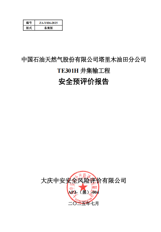 中国石油天然气股份有限公司塔里木油田分公司TE301H井集输工程安全预评价报告