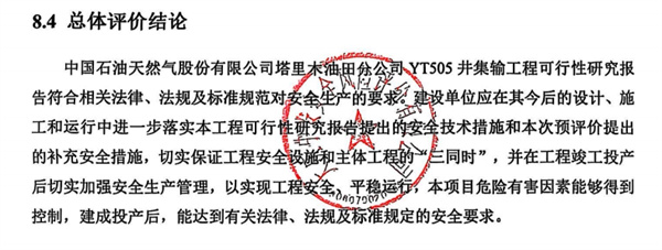中国石油天然气股份有限公司塔里木油田分公司YT505井集输工程可行性研究报告符合相关法律、法规及标准规范对安全生产的要求。建设单位应在其今后的设计、施工和运行中进一步落实本工程可行性研究报告提出的安全技术措施和本次预评价提出的补充安全措施,切实保证工程安全设施和主体工程的“三同时”,并在工程竣工投产后切实加强安全生产管理,以实现工程安全、平稳运行,本项目危险有害因素能够得到控制,建成投产后,能达到有关法律、法规及标准规定的安全要求。 |
