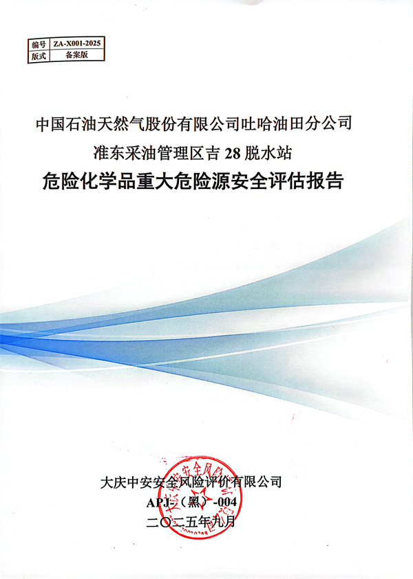 中国石油天然气股份有限公司吐哈油田分公司准东采油管理区吉28脱水站危险化学品重大危险源安全评估报告 |