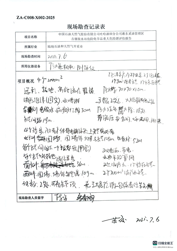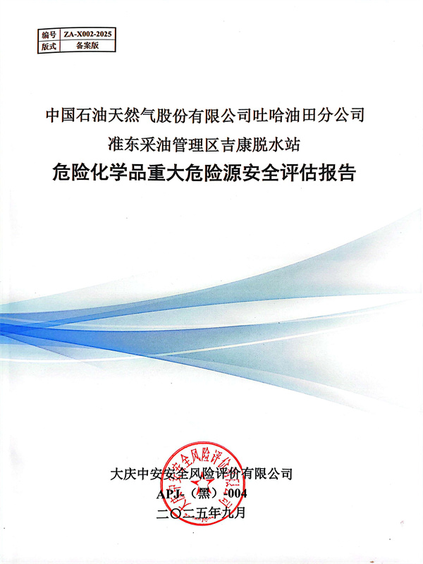 中国石油天然气股份有限公司吐哈油田分公司准东采油管理区吉康脱水站危险化学品重大危险源安全评估报告 |