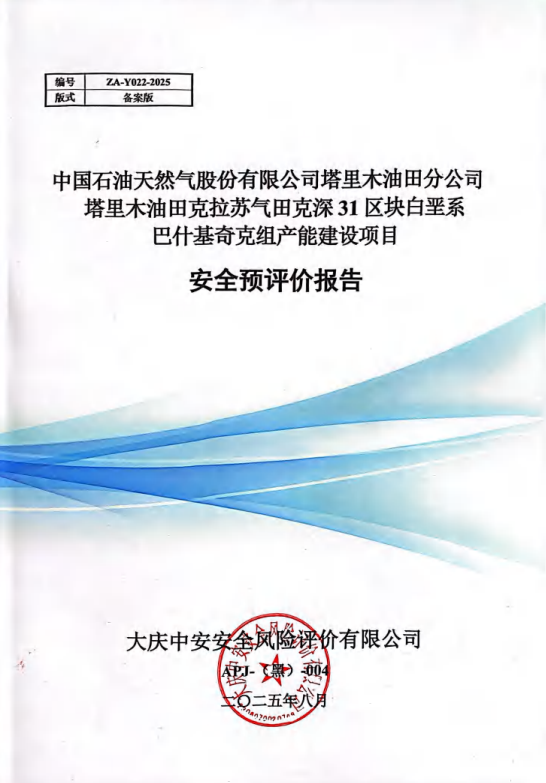 中国石油天然气股份有限公司塔里木油田分公司塔里木油田克拉苏气田克深31区块白垩系巴什基奇克组产能建设项目安全预评价