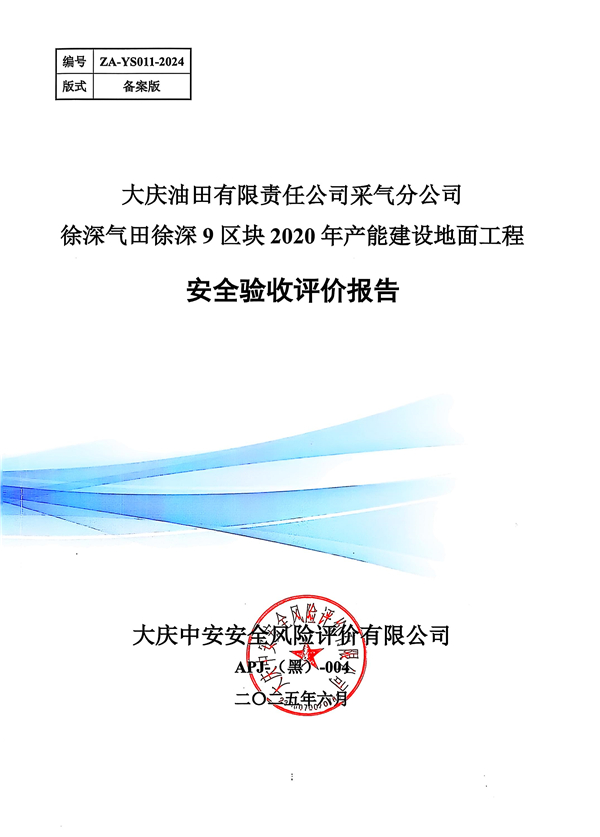 大庆油田有限责任公司采气分公司徐深气田徐深9区块2020年产能建设地面工程安全验收评价报告 |