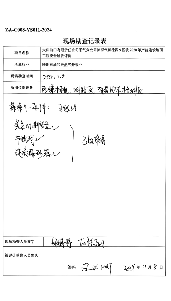 大庆油田有限责任公司采气分公司徐深气田徐深9区块2020年产能建设地面工程设计、施工、试运行管理和监督制度齐全,通过符合性检查,符合国家有关法律、法规和国家及行业技术标准和规范的要求,具备安全验收的条件。 |
