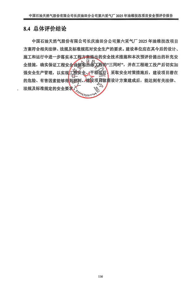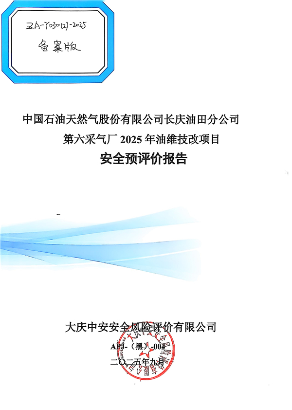 中国石油天然气股份有限公司长庆油田分公司第六采气厂2025年油维技改项目安全预评价报告 |
