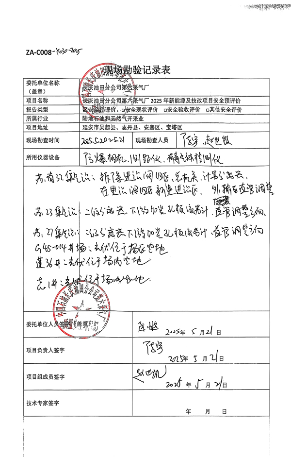 中国石油天然气股份有限公司长庆油田分公司第六采气厂2025年油维技改项目安全预评价