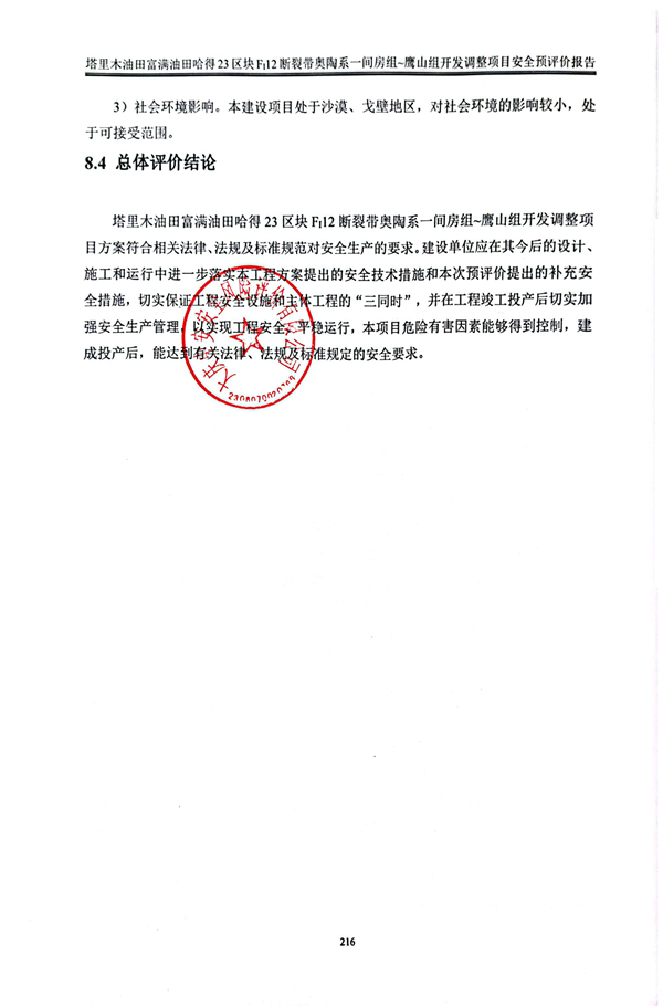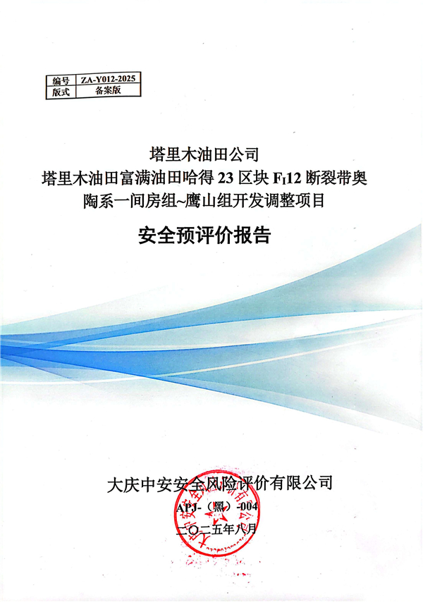 塔里木油田公司塔里木油田富满油田哈得23区块FI12断裂带奥陶系一间房组~鹰山组开发调整项目安全预评价报告 |