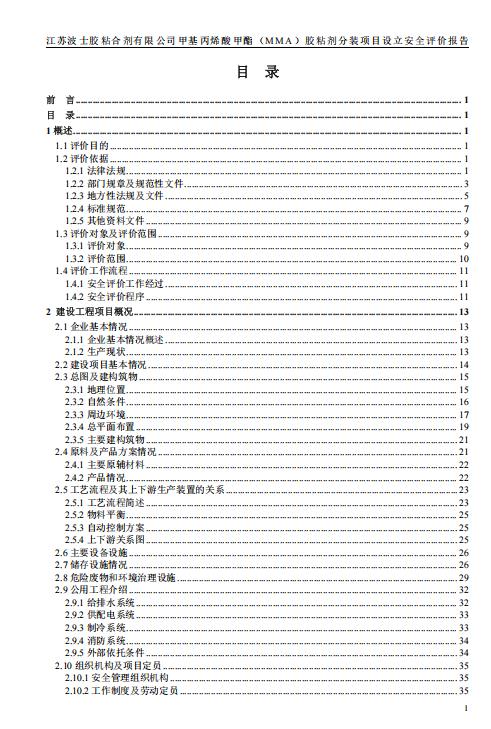甲基丙烯酸甲酯(MMA)胶粘剂分装项目设立安全评价报告 |