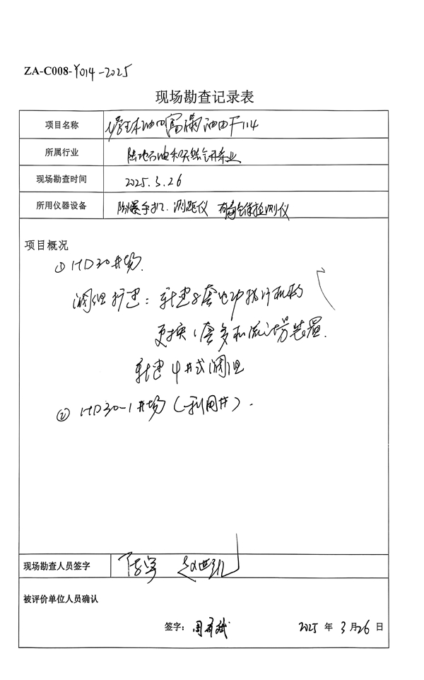 到现场开展安全评价工作的人员名单 |