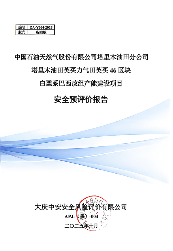 中国石油天然气股份有限公司塔里木油田分公司塔里木油田英买力气田英买46区块白垩系巴西改组产能建设项目安全预评价报告