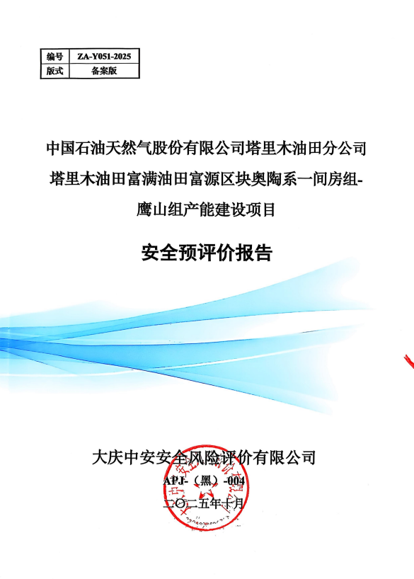 中国石油天然气股份有限公司塔里木油田分公司塔里木油田富满油田富源区块奥陶系一间房组-鹰山组产能建设项目安全预评价报告 |