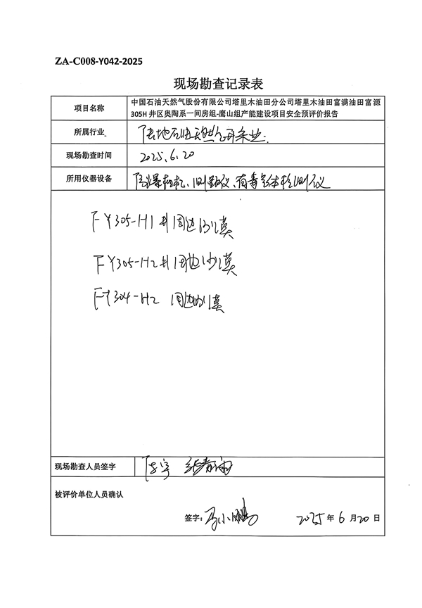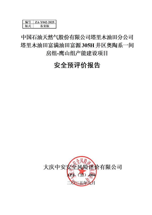中国石油天然气股份有限公司塔里木油田分公司塔里木油田富满油田富源305H井区奥陶系一间房组-鹰山组产能建设项目安全预评价报告 |