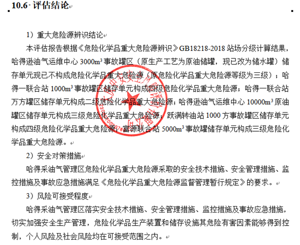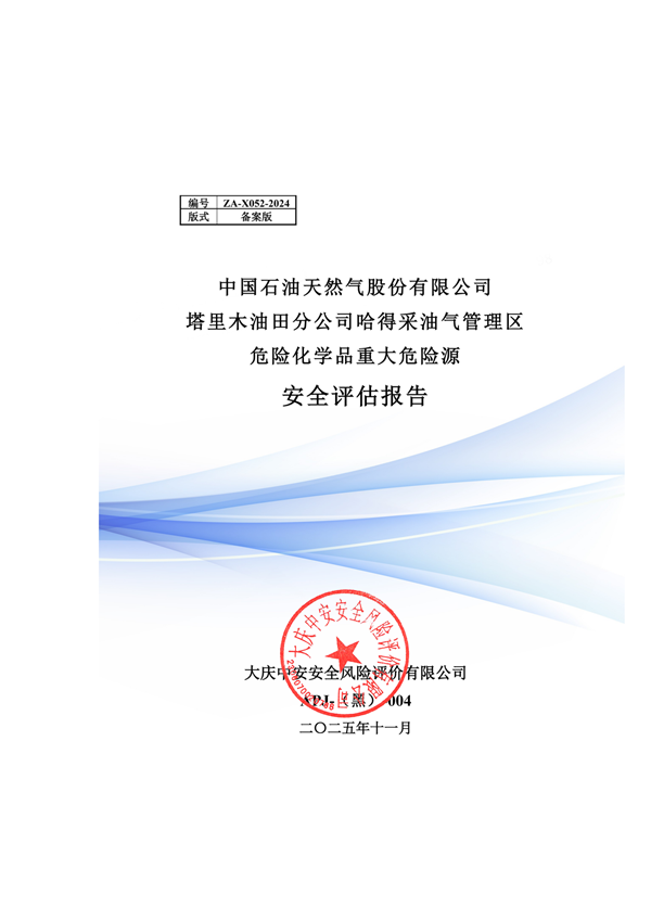 中国石油天然气股份有限公司塔里木油田分公司哈得采油气管理区危险化学品重大危险源安全评估报告