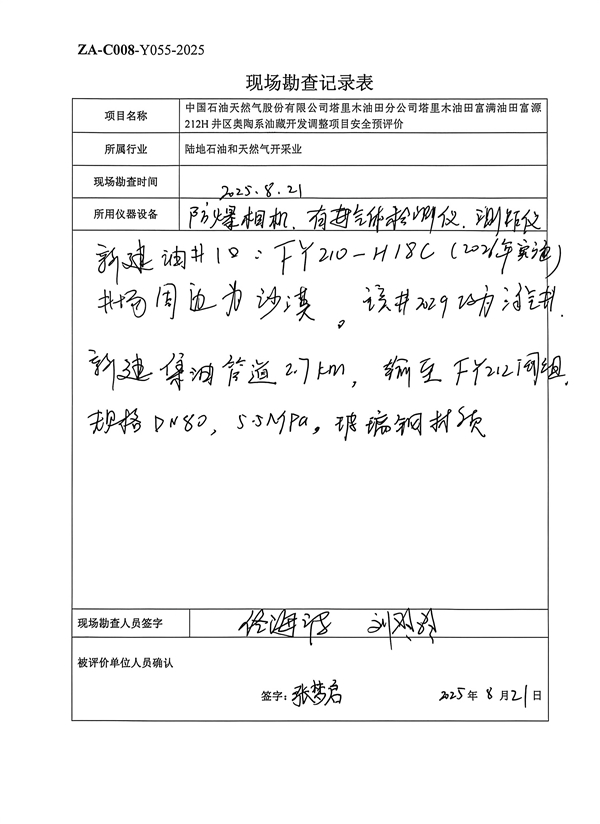 中国石油天然气股份有限公司塔里木油田分公司塔里木油田富满油田富源212H井区奥陶系一间房组-鹰山组产能建设项目 |